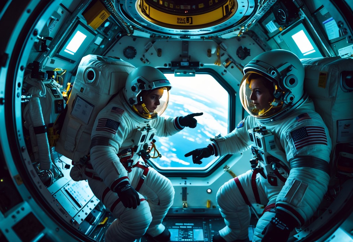 Microgravity changes everything. You float, objects hang in mid-air, and you use handholds or foot restraints to stay put.