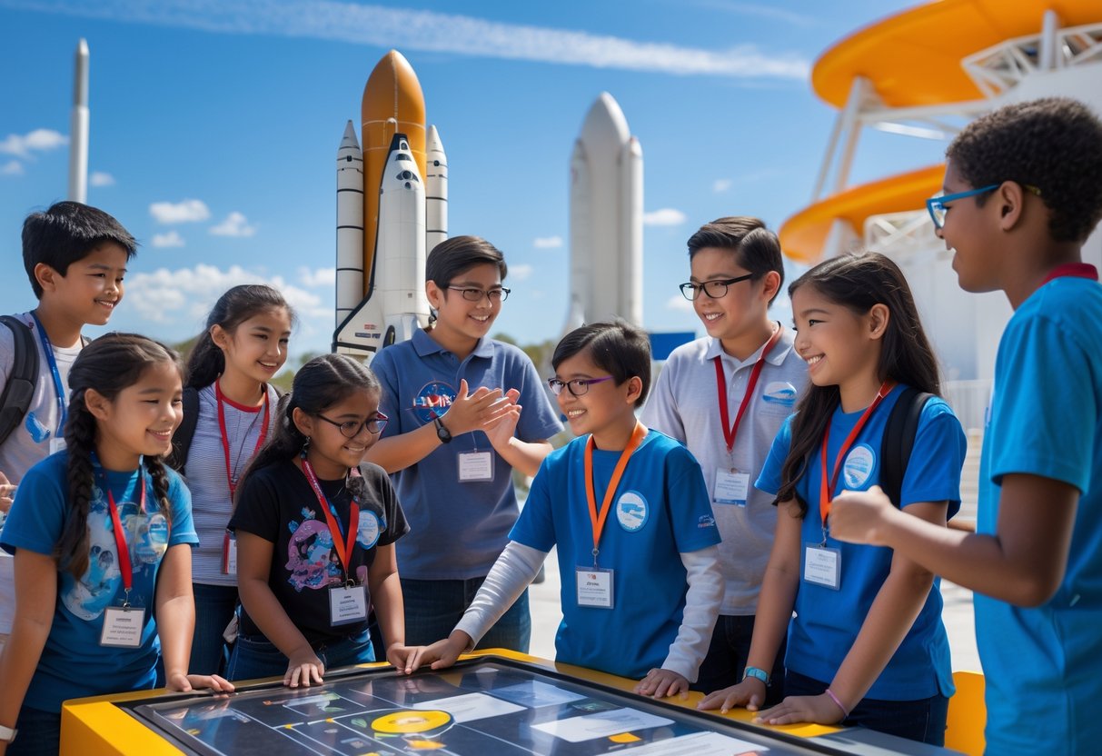 Activities take place all over Kennedy Space Center Visitor Complex. Students join engineering challenges that match real NASA problem-solving situations. The curriculum ties classroom STEM learning to practical space science.