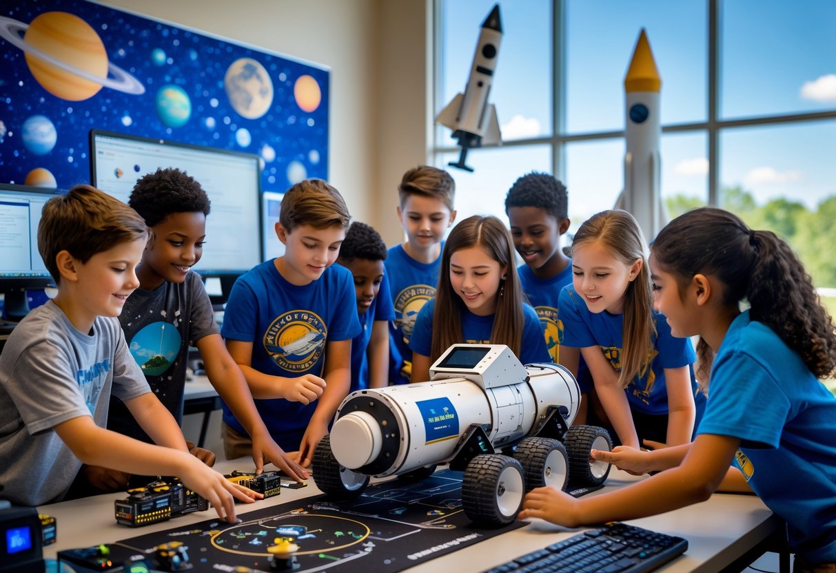 Cyber camp dives into cybersecurity and digital tech in aerospace. Campers explore programming, network security, and space communications. They see how cyber tools protect spacecraft and ground control.